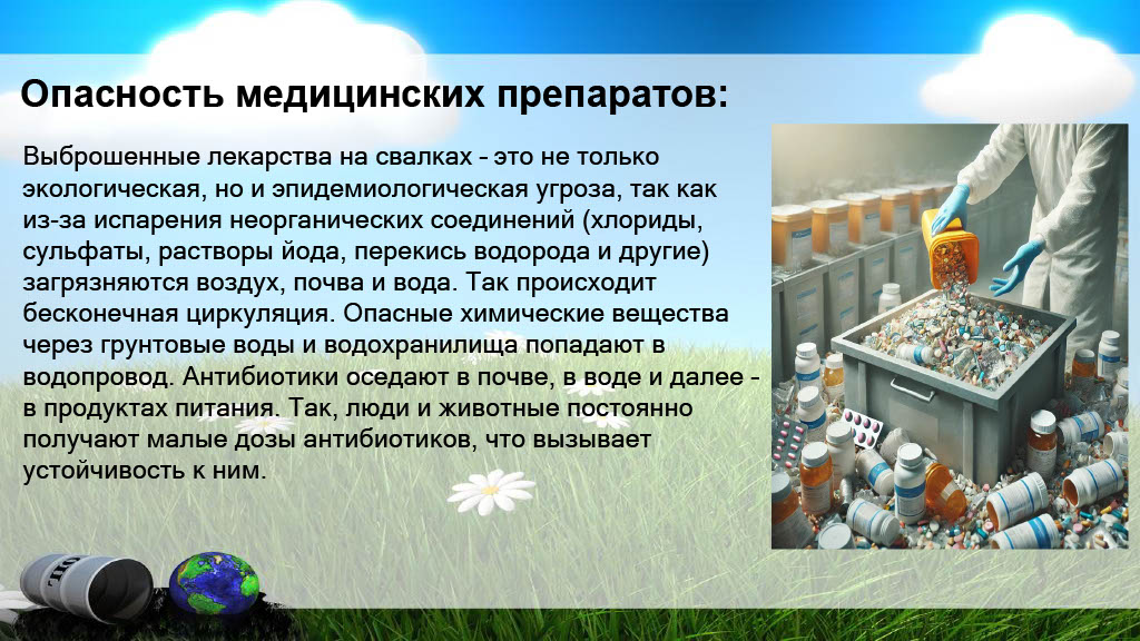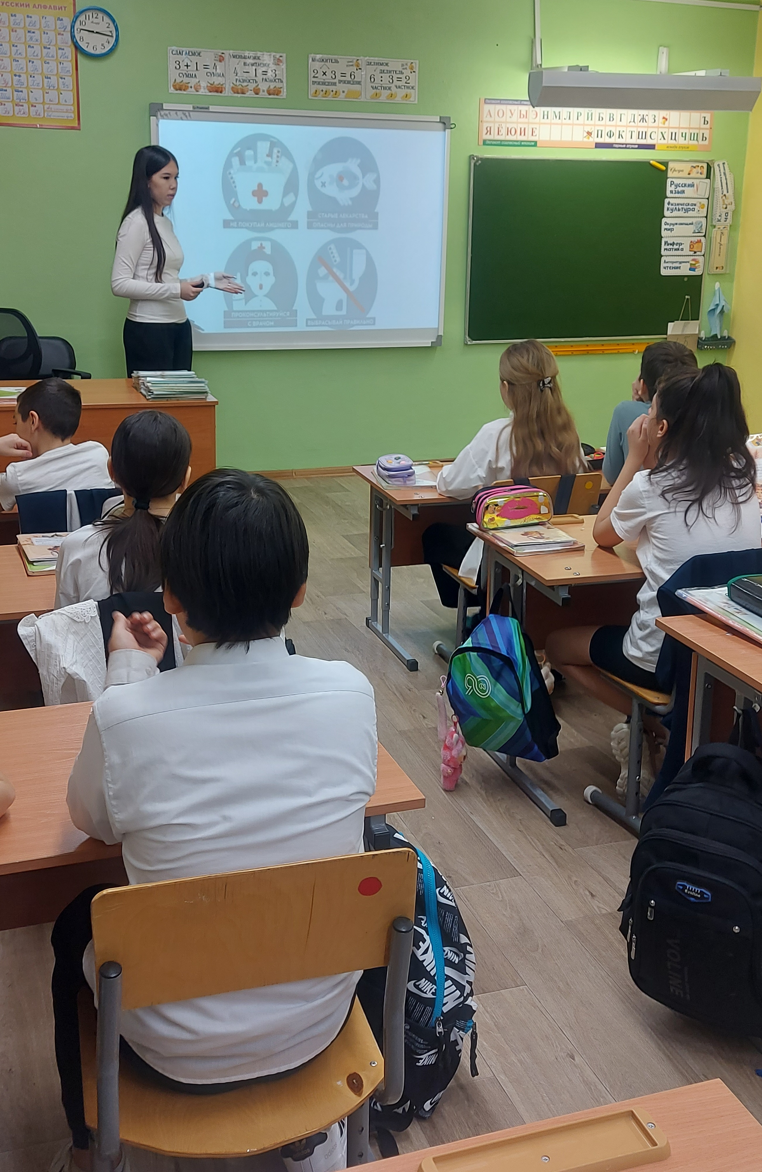 Также были упомянуты активные акции нашей школы, направленные на сбор полезных предметов, таких как пластиковые крышки («Сдай крышечку – позаботься о природе и помоги детям!») и использованные батарейки («Батарейки сдавайтесь!»). Помимо этого, прозвучали рекомендации по правильной утилизации лекарственных препаратов, ведь их неправильное обращение также негативно влияет на окружающую среду и наше здоровье.