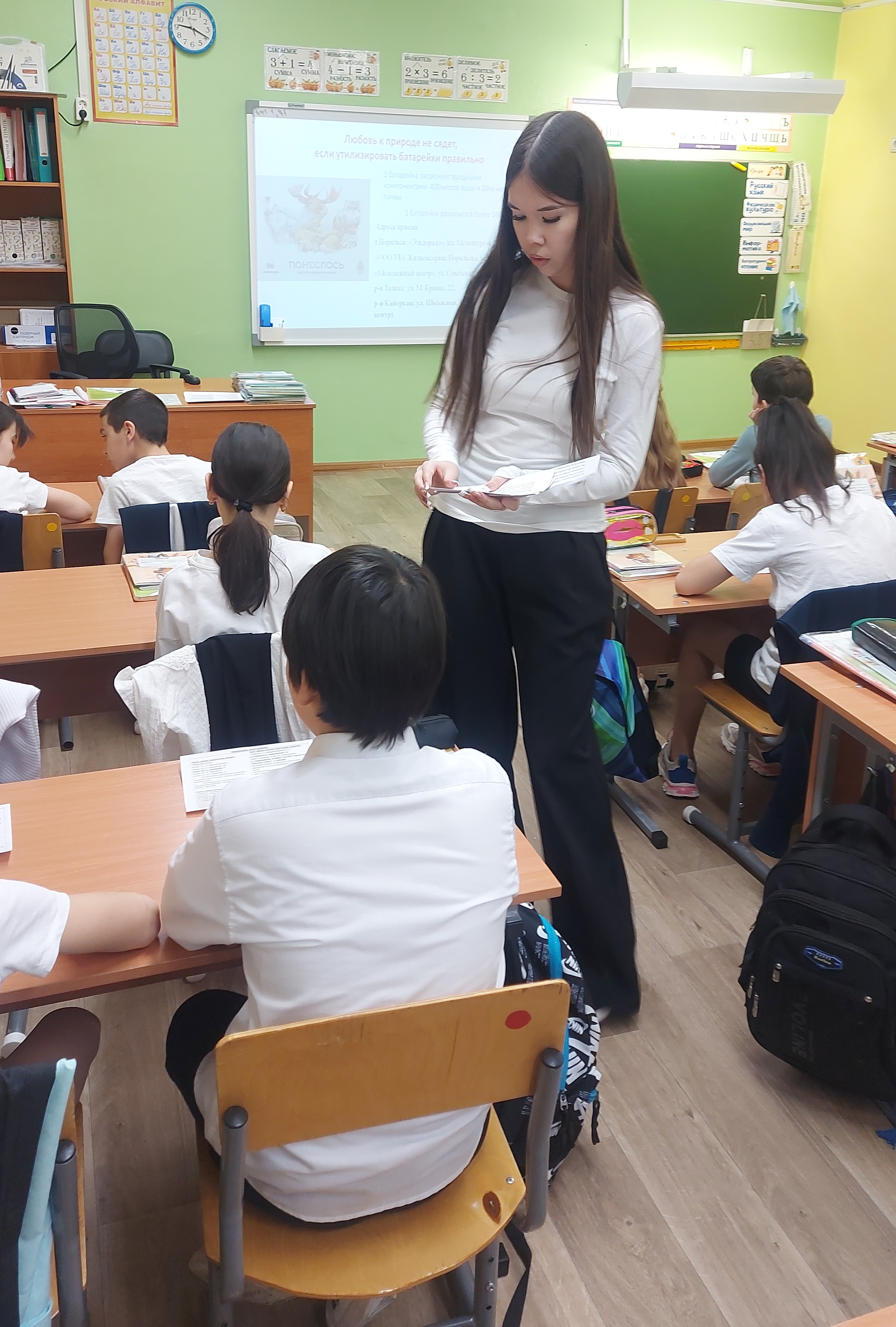 Ученица социально-педагогического класса 10А Муллагулова Милена провела экологический час «Решаем проблему утилизации бытовых отходов вместе» среди учащихся младших классов школы. Мероприятие состоялось в рамках повышения экологической грамотности школьников и привлечения внимания общественности к вопросам охраны окружающей среды города Норильска.